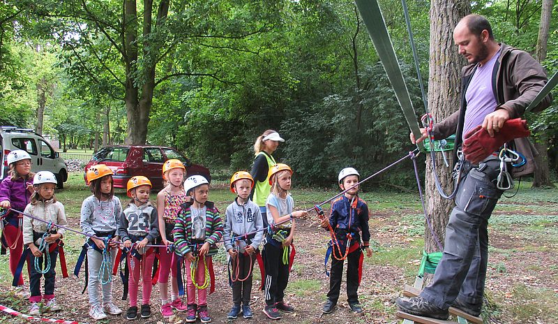 L’accrobranche, c’est du sérieux. On écoute bien le moniteur, spécialisé et diplômé en la matière, avant de s’élancer sur le parcours. Il est important de bien utiliser le matériel mis à disposition pour assurer sa sécurité.